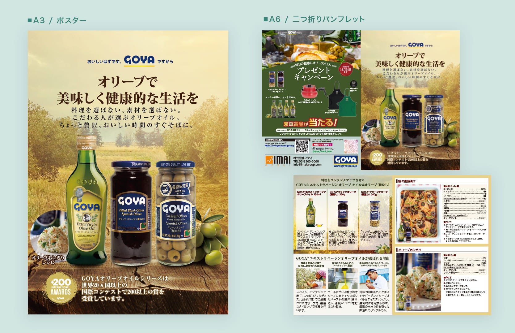 スペインに本社を持つGOYA社のデザイン制作を担当しました。今回のプロジェクトでは、オリーブオイルの試食会とインスタグラムを活用したキャンペーン用の販促物を作成しました。